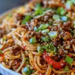 Asian-Style Ground Beef Spaghetti offers a unique twist on the classic spaghetti dish. The combination of ground beef and Asian flavors, like soy sauce and sesame oil, creates a delicious meal that is both easy to prepare and satisfying. This recipe is perfect for busy weeknights, as it takes minimal time to cook while still providing a rich and savory taste that everyone will enjoy.