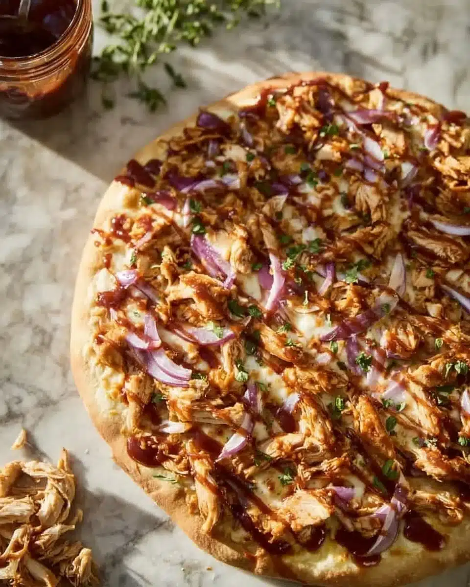 BBQ Chicken Pizza is a delicious twist on traditional pizza, combining smoky barbecue sauce with tender chicken and gooey cheese, perfect for family dinners or casual gatherings.
