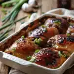 - Arrange the chicken thighs in a baking dish and pour the honey-garlic sauce evenly over the chicken.