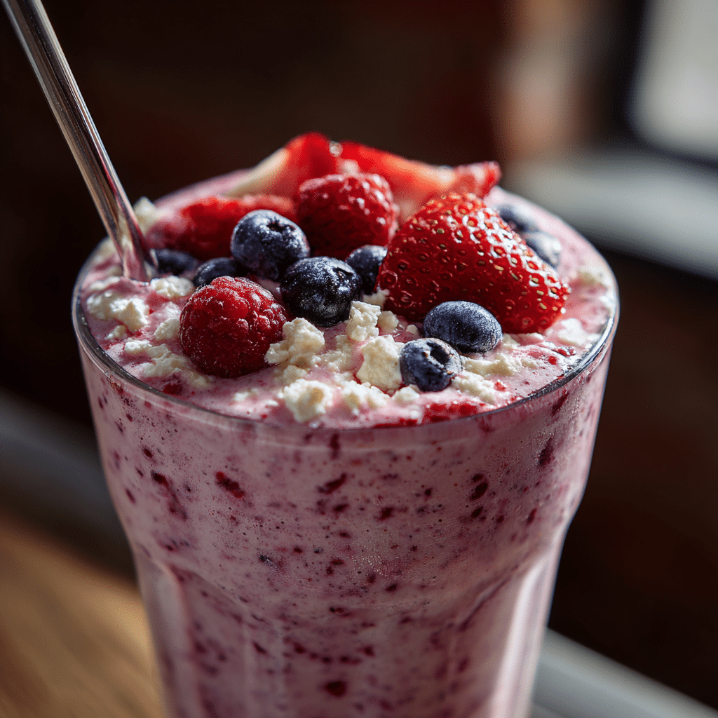 I’ve tested a lot of smoothies over the years, but this one stands out. One hectic Tuesday morning, I ran out of Greek yogurt—my usual base—and found a half-full tub of cottage cheese in the back of the fridge. Out of curiosity and caffeine-driven urgency, I scooped it into the blender with frozen blueberries, almond butter, and a splash of oat milk. What came out was creamy, tangy-sweet, and downright addictive.