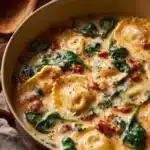 Creamy Tuscan Ravioli Soup is a delightful dish that brings comfort and warmth to your table. With its rich flavors and creamy texture, it’s perfect for a cozy dinner or a chilly evening. The combination of Italian sausage, fresh spinach, and sun-dried tomatoes creates a hearty meal that feels indulgent but is easy to prepare. Plus, it’s a one-pot dish, which means less mess and more time to enjoy with family and friends!