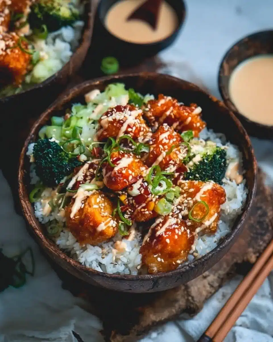 Serve these bowls warm, and ensure everyone has a generous drizzle of the bang bang sauce for extra flavor. You can also add extra toppings like sesame seeds or chopped green onions for a nice touch.