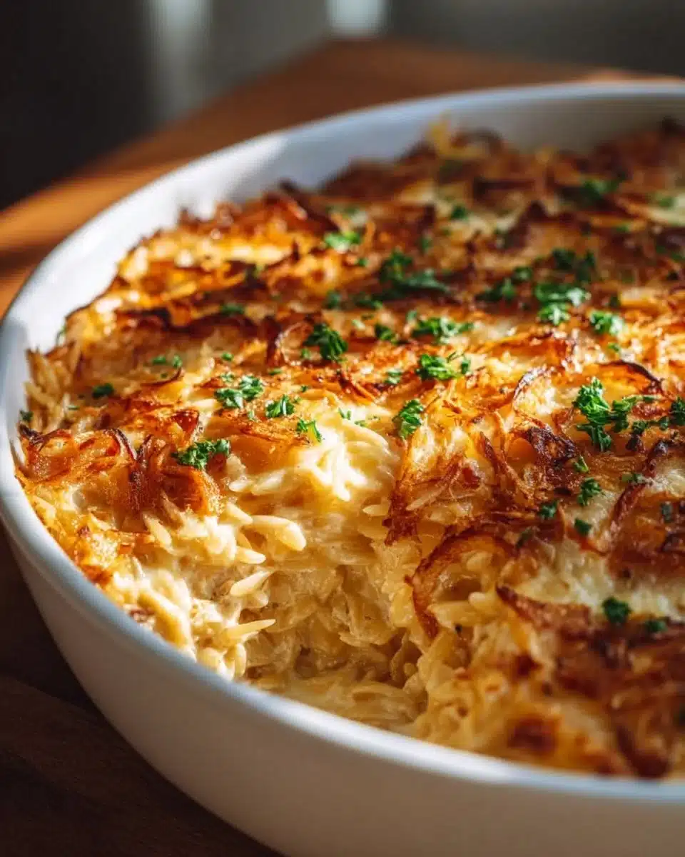 French Onion Chicken Orzo Casserole is a comforting dish that combines the rich flavors of French onion soup with hearty orzo pasta and tender chicken. It’s perfect for family dinners or gatherings, as it’s easy to make and can feed a crowd. The blend of caramelized onions, creamy sauce, and melted cheese creates a deliciously satisfying meal that everyone will love.