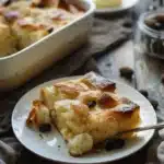 A delightful image showing a warm, inviting bread pudding fresh from the oven.