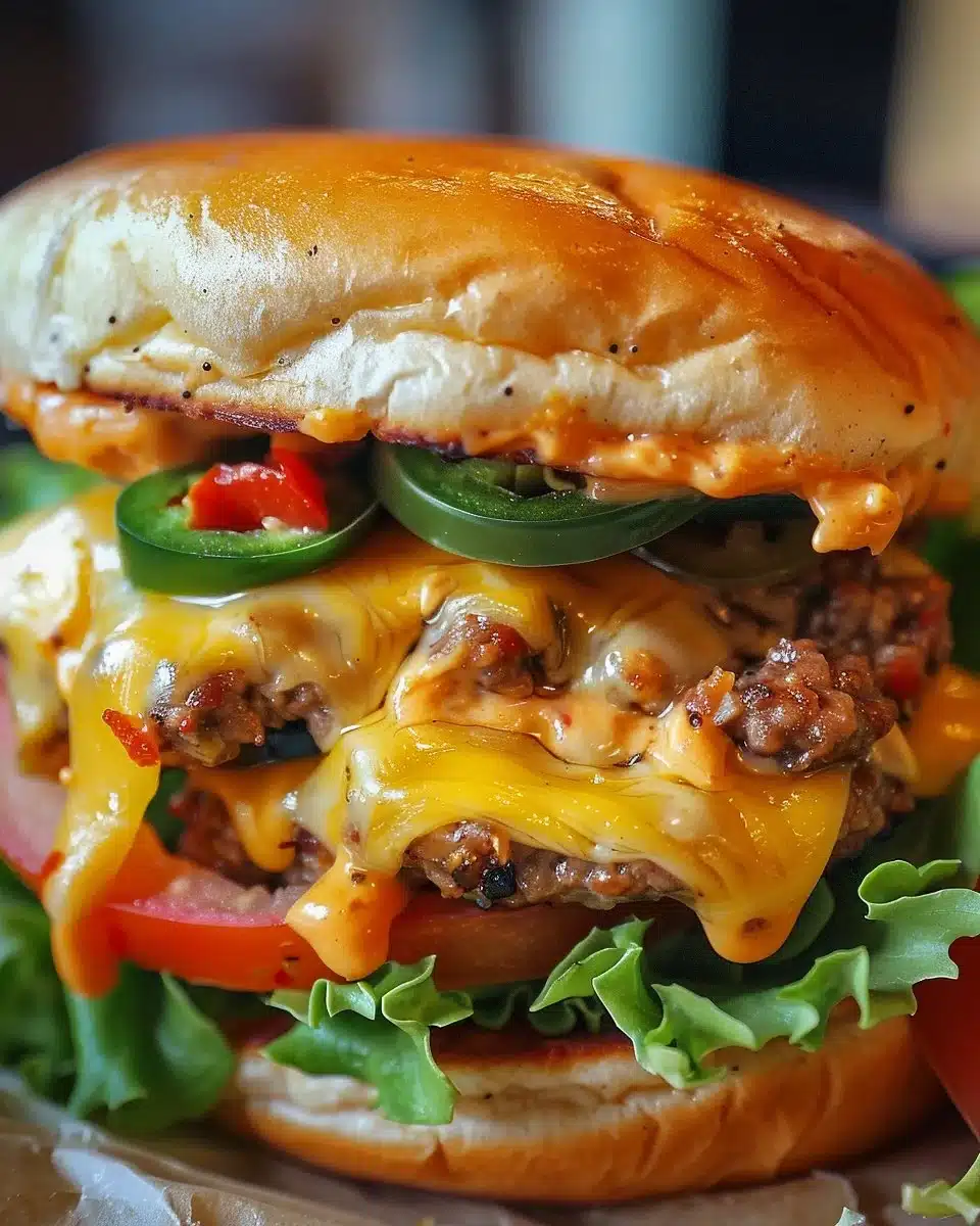 Serve these burgers hot off the grill. Place the grilled patties on the toasted burger buns and top them with your favorite toppings like lettuce, tomato, and avocado. You can also add some extra pepper jack cheese or a spicy mayo for more flavor. Pair them with fries, a salad, or chips for a complete meal.
