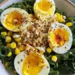 Kale Salad with Lemon Dressing is a refreshing and nutritious dish. This salad is not only packed with vitamins but is also simple to prepare. The combination of tender kale, roasted corn, and hard-boiled eggs creates a satisfying meal. The zesty lemon dressing adds brightness to this wholesome dish. It’s ideal for lunch, dinner, or as a side dish for your favorite main courses.