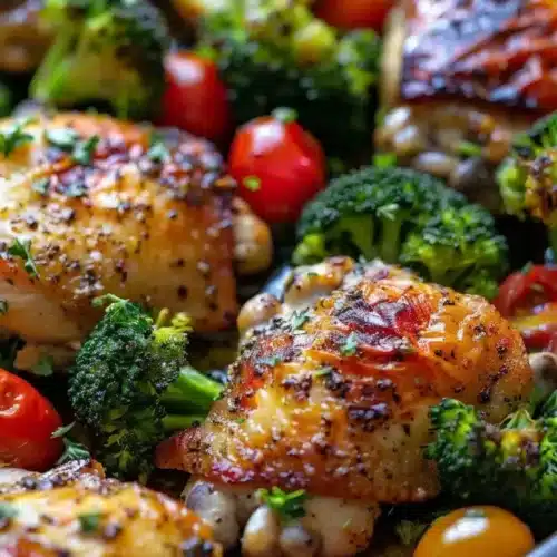 One variation is to use chicken breast instead of thighs for a leaner option. You can also switch up the vegetables based on what you have on hand – asparagus and green beans make great substitutes. If you like some heat, add a pinch of red pepper flakes to the garlic-lemon mixture.