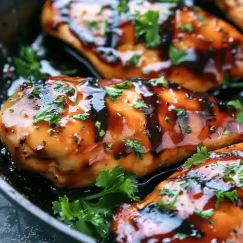 - Pour the sauce mixture over the chicken breasts, ensuring they are well coated.