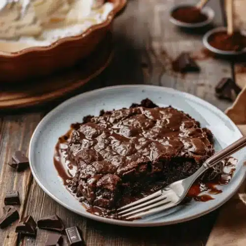 What makes this recipe truly special is its simplicity and the incredible combination of textures. The top layer forms a cake-like crust while the bottom transforms into a luscious chocolate sauce, creating a delightful contrast with each spoonful. Topped with a scoop of vanilla ice cream, it’s a dish that brings smiles and satisfied sighs from everyone at the table. Trust me, once you taste it, you’ll understand why this dessert has stood the test of time.