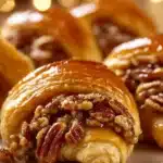 A fun twist on the classic pecan pie, these crescent rolls blend rich flavors with a flaky, buttery texture, making them a delightful dessert perfect for any gathering.