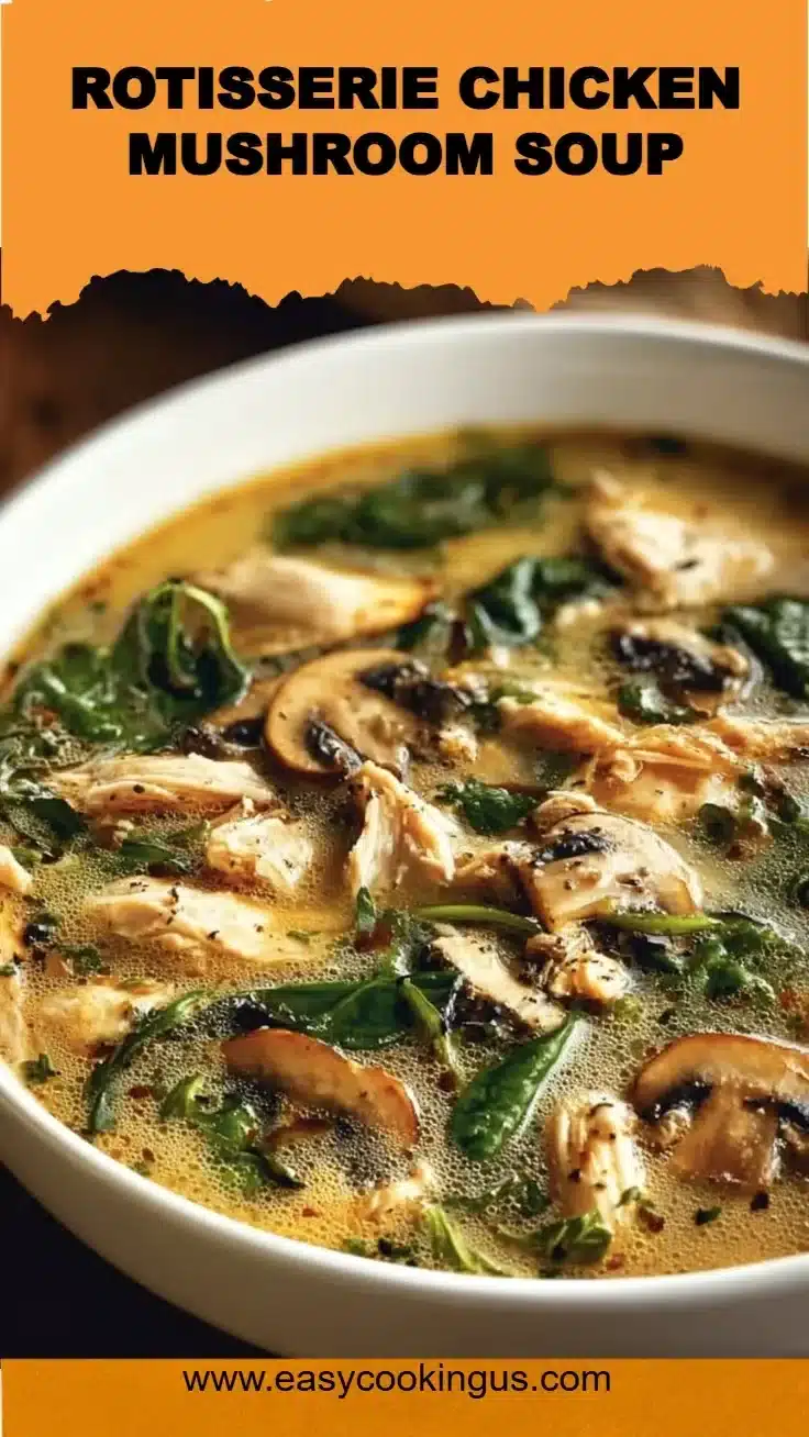 A heartwarming and nutritious soup made with rotisserie chicken, fresh mushrooms, and creamy broth, perfect for cozy dinners or quick lunches.