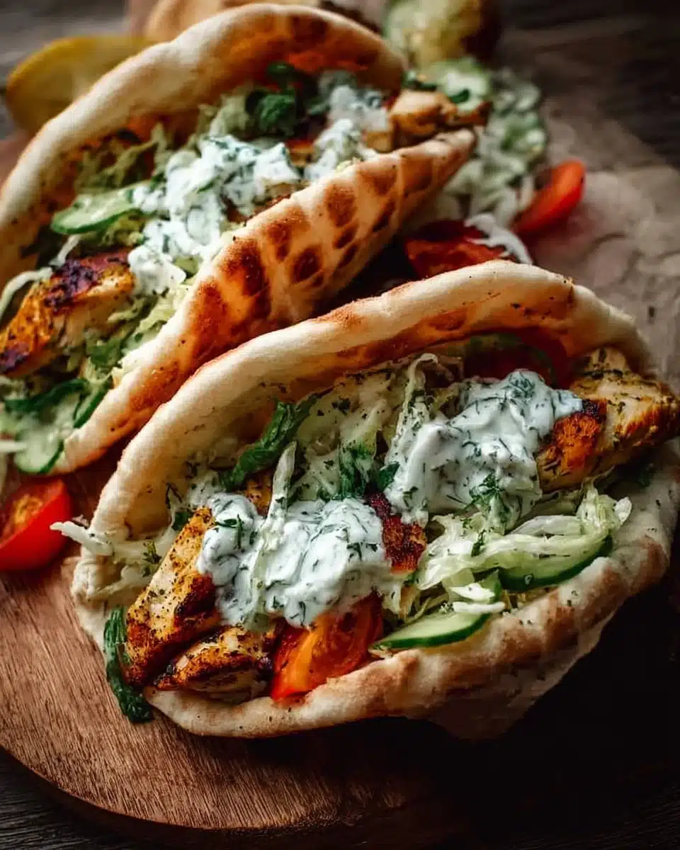 If you have leftovers, store the components separately for the best freshness. Keep the chicken, slaw, and pitas in airtight containers in the refrigerator. They will last for 2-3 days. Reheat the chicken in the oven or microwave before serving and assemble fresh pitas.