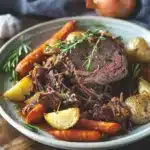 What makes this recipe stand out is its simplicity; with just a few wholesome ingredients and minimal prep time, you’ll have a hearty meal that everyone will love. Whether it’s a chilly Sunday evening or a festive occasion, this pot roast is sure to bring smiles and satisfaction to your table. Paired with your favorite bread or served over creamy mashed potatoes, this dish is destined to become a cherished family favorite.
