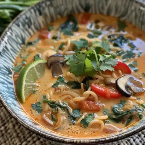 Spicy Coconut Curry Ramen is a comforting bowl of goodness that warms you from the inside out. The rich coconut milk blends perfectly with red curry paste, creating a unique and bold flavor. This recipe is not just delicious but also quick to prepare, making it ideal for a weeknight dinner or a cozy weekend meal. Plus, you can customize it with your favorite veggies or protein, making it a versatile option for everyone.