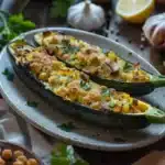 Zucchini is often overlooked, but this vibrant vegetable is a canvas for culinary creativity! Stuffed zucchini is a dish that brings together fresh, wholesome ingredients and transforms them into a hearty, comforting meal. The hollowed-out zucchinis act as adorable little boats, filled with a savory mixture of onions, mushrooms, and chickpeas that are enhanced with the bright zing of lemon juice and aromatic herbs. This recipe is not just a feast for the eyes but also a delicious way to incorporate more vegetables into your diet.