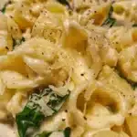 - Toss the cooked pasta with the ricotta mixture and spinach in the skillet until evenly coated.